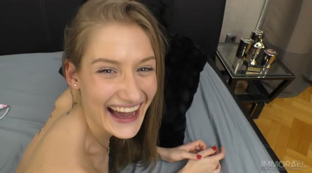 Gamer girl Ella Knox is trying to beat Alex Jett's score after they bet some oral sex. The cute brunette fails to win in the videogame but certainly wins when it comes to sucking cock and showing her amazing tits. More than game over this is game on!